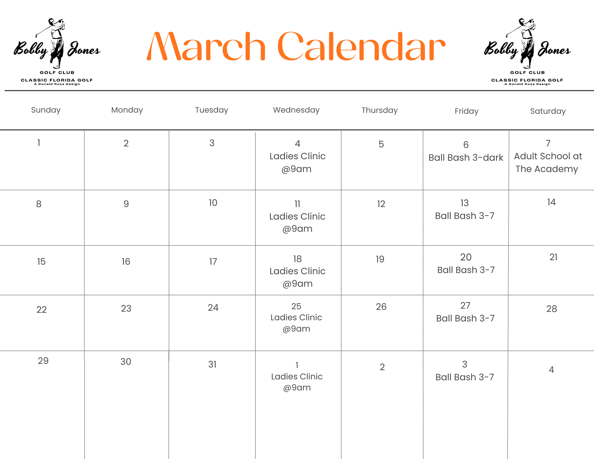 March Academy Calendar